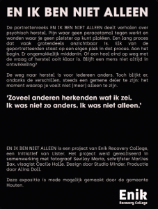 Gisteren, op 22 januari, opende Enik Recovery College Houten feestelijk de deuren voor de expositie EN IK BEN NIET ALLEEN.