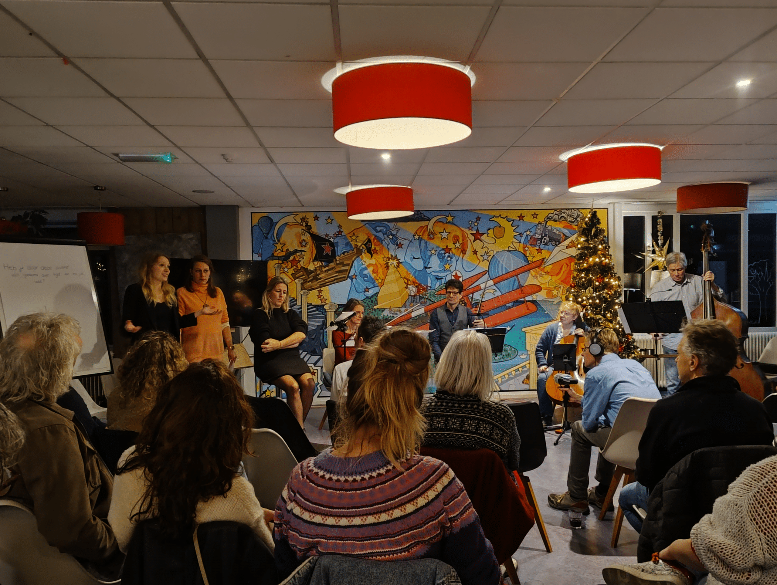 Ook Van Dam had op persoonlijk vlak baat van de samenwerking. “Toen wij ter voorbereiding samen naar de composities luisterden, werd ik echt geraakt door de compositie over naasten. Het opende iets in mij waar ik daarvoor nog geen ruimte voor had. De muziek werkte als een soort kanaal. Daarom ben ik zo blij dat we dit hebben kunnen organiseren en anderen ook de mogelijkheid hebben gekregen om in zichzelf ruimte te laten ontstaan voor nog weggestopte gevoelens en ervaringen.”